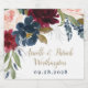 Design features beautiful watercolor floral elements (peony roses, several elegant English rose elements, etc) in shades of burgundy red, blush pink peach, navy blue and more over eucalyptus greenery, leaf elements, and more in shades of green, silver and antique gold.