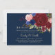 Navy Blue Burgundy Floral Bouquet Wedding Invitation