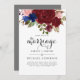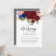 Navy Blue Burgundy Floral Bouquet Wedding Invitation