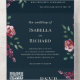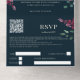 Navy Blue | Burgundy Floral | QR Code RSVP All In One Invitation
