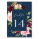 Navy Blue Burgundy Gold Blush Pink Floral Wedding Table Number