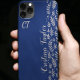 Navy Blue & Bush pink Leaf pattern monogrammed iPhone Case