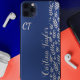 and I am absolutely thrilled about this Blush pink Leaf pattern print over Blue iPhone Case, that allowes you tocustom it with your own name and monogram initials using a retro script typography !