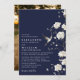Navy Blue Chinoiserie Floral Garden Wedding Photo Invitation