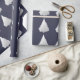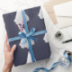 Navy Blue Christmas Tree Silver Holiday Wrapping Paper