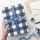 Navy Blue Classic Gingham Check Plaid Wrapping Paper