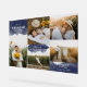 Acrylic wedding welcome sign with a clean collage of five photos with your initials, names, and wedding date in elegant white fonts against navy blue watercolor. Modern acrylic wedding welcome sign with a minimalist design, elegant fonts, and a photo collage. Dark blue watercolor wedding welcome sign with a clean photo design, your initials, and wedding date in white fonts.