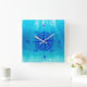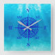 Navy Blue Compass Rose Square Wall Clock