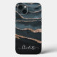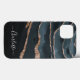 Modern Abstract Shimmering dark blue watercolor navy blue & copper background. Elegant Script custom name. Personalize this beautiful iPhone Case with your own name.