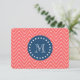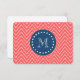 Navy Blue, Coral Chevron Pattern | Your Monogram Card