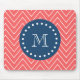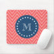Navy Blue, Coral Chevron Pattern | Your Monogram Mouse Mat