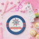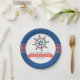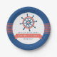 Navy Blue & Coral Nautical Boat Wheel & Stripes Paper Plate