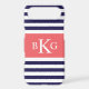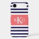 Navy Blue Coral Stripes Monogram Case-Mate iPhone Case