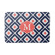 Navy Blue, Coral, White Ikat Diamond Pattern Bath Mat