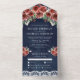 Navy Blue Country Lace Marsala Floral Wedding All In One Invitation