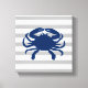 Navy Blue Crab Grey and White Stripes Canvas Print