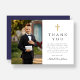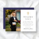 Navy Blue Cross Boy First Communion Photo Thank You Card