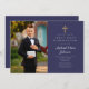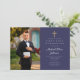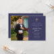 Personalised Navy Blue Cross Photo Boy First Communion Invitation