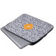 The sleeve is made of nice feeling material and seems very durable. I'm not sure how easy it'll be to clean, but the construction seems sound and the fabric is quick thick. I also like the double zipper. The printing is lovely and appears durable. The white on black contrast is nice, and the design very elegant.