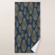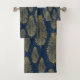 Navy Blue Damask & Gold Fern Leaf Pattern Bath Towel Set