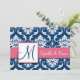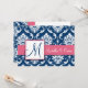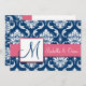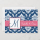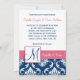 Navy Blue Damask Monogram Invitation Pink