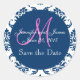 Navy Blue Damask Pink Monogram Save the Date Classic Round Sticker