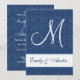 This navy blue and white damask and monogram design makes an elegant wedding invitation. Add your names and monogram to the front, and personalise with your text on the back. Try out different papers to see which look you like the best, by clicking on "Invitation Options" and then "Paper Type". Enjoy creating your own special look!