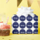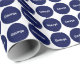 A wrapping paper designed with a navy blue dot pattern on a white background and name. Customise the wrapping paper with your special name or text among other options.