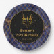 Navy Blue Dragon Scales Gold Faux Glitter Birthday Paper Plate