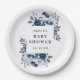 Navy Blue Elegant Country Floral Baby Shower Paper Plate