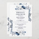 This elegant navy blue and white floral bridal shower invitation can be personalised with your information in modern typography with your registry QR code on the reverse. Designed by Thisisnotme©