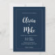 Announce your special day with this navy blue minimalist wedding invitation, designed with a sophisticated serif layout and elegant script font. Perfect for formal, evening, or winter weddings, this template provides a timeless and classy look with a modern twist.