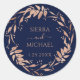Navy Blue | Elegant Rose Gold Foliage Wedding Classic Round Sticker