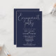 This navy blue elegant script engagement party invitation can be personalised with all your special event information. Designed by Thisisnotme©