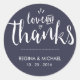 Vintage and rustic decorative script font wedding thank you sticker. Elegant and classic design navy blue and white wedding favour sticker. Classic wedding favour, bridal shower gift label, birthday party, engagement dinner, baby shower and much more. The background colour can be changed to your desired theme.
