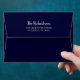 These solid dark navy blue envelopes feature a white interior, and your name and pre-printed return address on the back flap in a mix of trendy white script typography and modern text. These are made to coordinate perfectly with the rest of our "Blue Foliage" Hanukkah collection.
