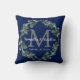 Navy Blue Eucalyptus Monogram Wedding Keepsake Cushion