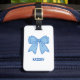A blue faux glitter luggage tag brings elevated style to bachelorette trips. Featuring a bold bow in a trendy faux glitter pattern, it’s a fun and functional gift for brides and bridesmaids planning a destination celebration or a summer bridal getaway. Click on "personalize this template" to add your details. Matching wedding party gifts, Bridal Shower Accessories, and Bachelorette Party must-haves are available. Please message us with questions or to request custom items.