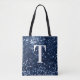 Navy Blue Faux Glitter Bokeh Sparkly Monogram Tote Bag