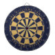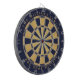 A classic dartboard design with alternating navy blue and faux gold foil triangles.