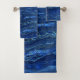 Navy Blue & Faux Gold Marble Acrylic Abstraction Bath Towel Set