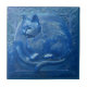 Navy blue faux relief cat ceramic tile inspired by Art Nouveau and Arts and Crafts movements with a floral background. Perfect for a housewarming gift to use as a trivet or to add a decorative tile in your own tiling. The ceramic tile is smooth, with a faux 3D effect. This is the left facing tile. Pair it with the right facing tile for a symmetrical tiling decor.