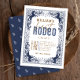 Kick off your little cowboy’s big day with this navy blue “First Rodeo” birthday invitation. Featuring classic western styling and bold blue tones, this personalised invite is perfect for setting the tone for a rustic, country-themed 1st birthday celebration. Customise with your party details to round up friends and family in style!