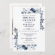 This elegant navy blue floral bridal shower invitation can be personalised with your information in modern typography and a special photo with your registry QR code on the reverse. Designed by Thisisnotme©
