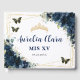 Navy Blue Floral Butterflies Gold Quinceanera 15 Guest Book