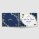 Cherish your special day for the years to come with a customized guest book. Featuring rich navy blue flowers and navy and gold butterflies. Personalize it with your details easily and quickly, simply press the Edit Using Design Tools button to further re-arrange and format the style and placement of the text. Perfect for Sweet Sixteen Birthday, Quinceanera, Debutante Ball, 18th Birthday and more occasions! (c) The Happy Cat Studio