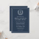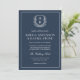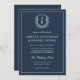 Navy Blue Floral Crest Monogram Wedding QR Code Invitation