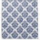 Elegant vintage floral damasks in a seamless geometric pattern, navy blue tones over customizable white background.