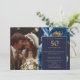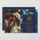 Navy Blue Floral Elegant 50th Anniversary Photo Invitation