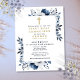Navy Blue Floral First Holy Communion Invitation Postcard